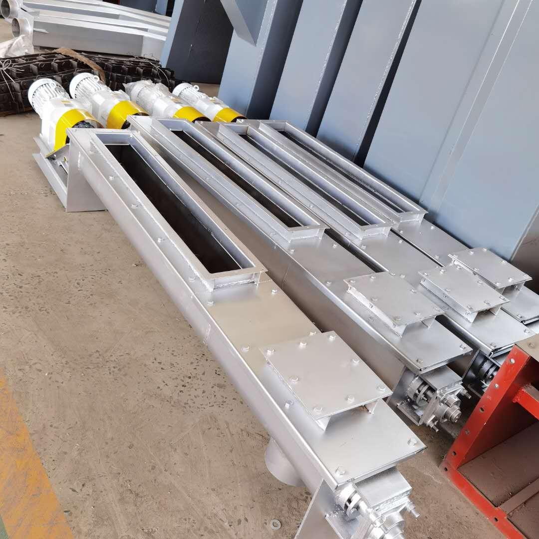 螺旋輸送機的運行原理是通過螺旋軸的轉(zhuǎn)動,把物料在葉片推力的作用下沿著輸送機的機體向前移動。物料在中間軸承的運移,則是依靠后面前進著的物料的推力。所以,物料在輸送機中的運送,完全是一種滑移運動。一般我們設(shè)計的螺旋輸送機的進料口與輸送機的驅(qū)動裝置在同一方向,便于推動物料,使輸送機的動力減輕。葉片的面型根據(jù)輸送物料的不同有實體面型、帶式面型、葉片面型等型式。螺旋輸送機的螺旋軸在物料運動方向的終端有止推軸承以隨物料給螺旋的軸向反力,在機長較長時,應(yīng)加中間吊掛軸承,以免因為螺旋軸和葉片過長,加上自身重力時間長了,出現(xiàn)同心度偏差問題。我們設(shè)計的輸送機可以根據(jù)客戶的要求做進出料口的方向,數(shù)量,及螺旋葉片的旋向。